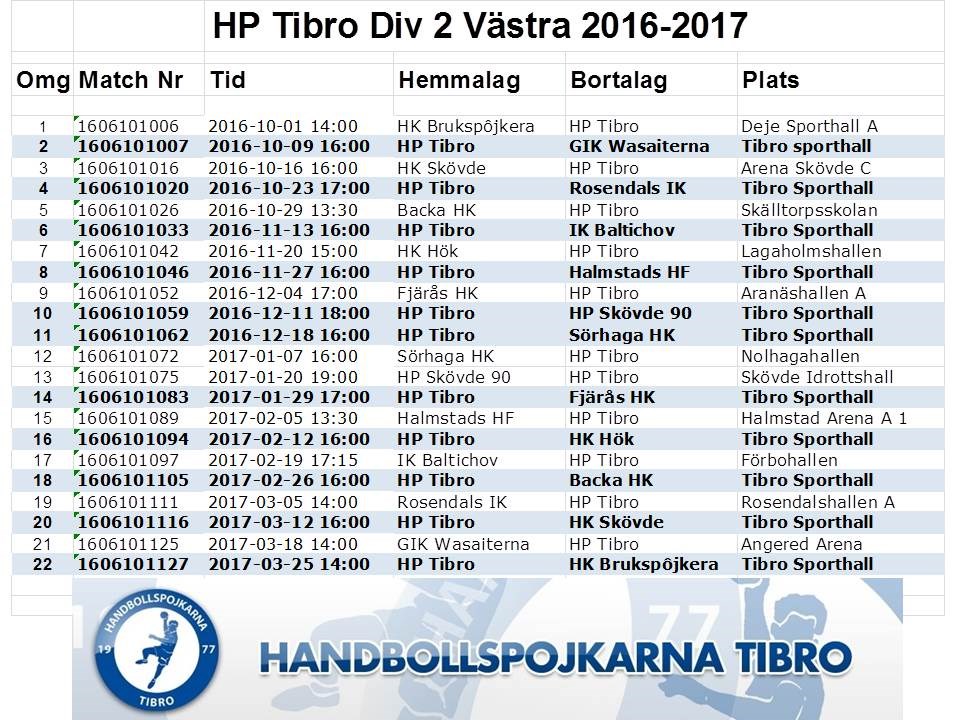 Spelschema Div 2 Västra Herrar fastställt. HP Tibro 1 sep 2016 0kommentarer