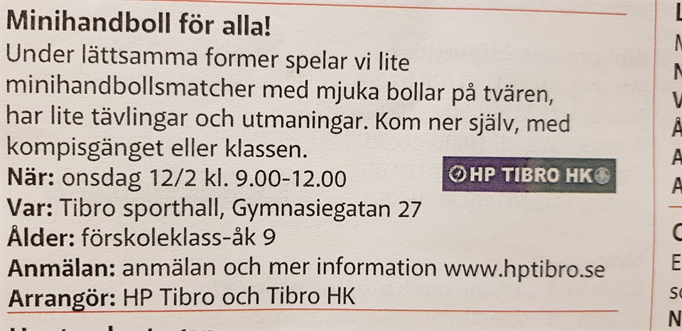 • Minihandboll på sportlovet ons 9-12!